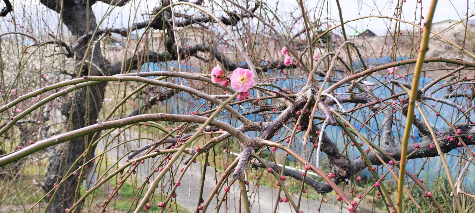 小梅→早咲きの十郎(曽我の里の主力栽培種)→南高→杉田→白加賀(加工用の主力品種)→枝垂れ、こんな順番で咲いていきます。このほかにも、梅林内の数は少ないですが蝋梅(梅ではありません)がこれが一番早く咲きます、紅梅などがあります。